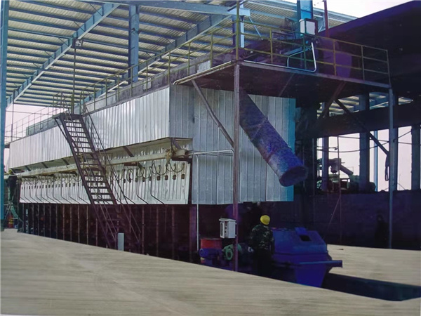 箱式烘干機是用長3.8米,寬0.4米,高4米的箱體疊加而成的烘干機,箱體個數(shù)與產(chǎn)量相匹配。各箱體之間有0.1米熱風(fēng)通道,風(fēng)道兩側(cè)箱板布有小孔,熱風(fēng)從小孔流向兩側(cè)煤球倉,進(jìn)而烘干煤球。高箱體頂部有布料皮帶機,把送上來的型煤均勻卸到每個箱體內(nèi),每個箱體下面有一個振動卸料裝置,十個或十二個卸料裝置依次振動卸料,一個循環(huán)完了再進(jìn)行二個循環(huán)。振動時間及振動頻次可依據(jù)烘干情況給予調(diào)整,調(diào)整后便可進(jìn)行自動循環(huán)。這種烘干機除了上面布料皮帶機和下面振動卸料器就沒有運動部件,一次調(diào)整后系統(tǒng)自動運行,只需要操作工在監(jiān)控室通過攝像頭觀察設(shè)備進(jìn)出料情況即可。箱式烘干機在型煤行業(yè)應(yīng)用廣泛。